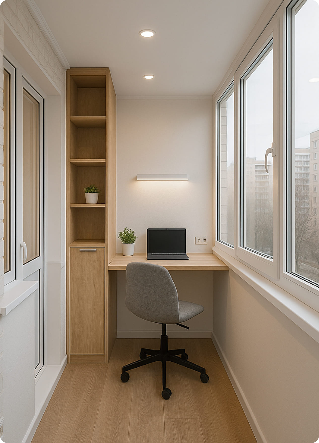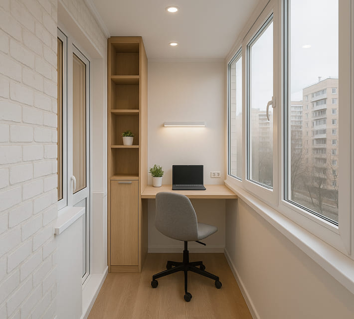 Отремонтируем балкон под ключ и сделаем из него кабинет, гардеробную или зону отдыха без лишних трат и переноса сроков – смета и условия фиксируются в договоре